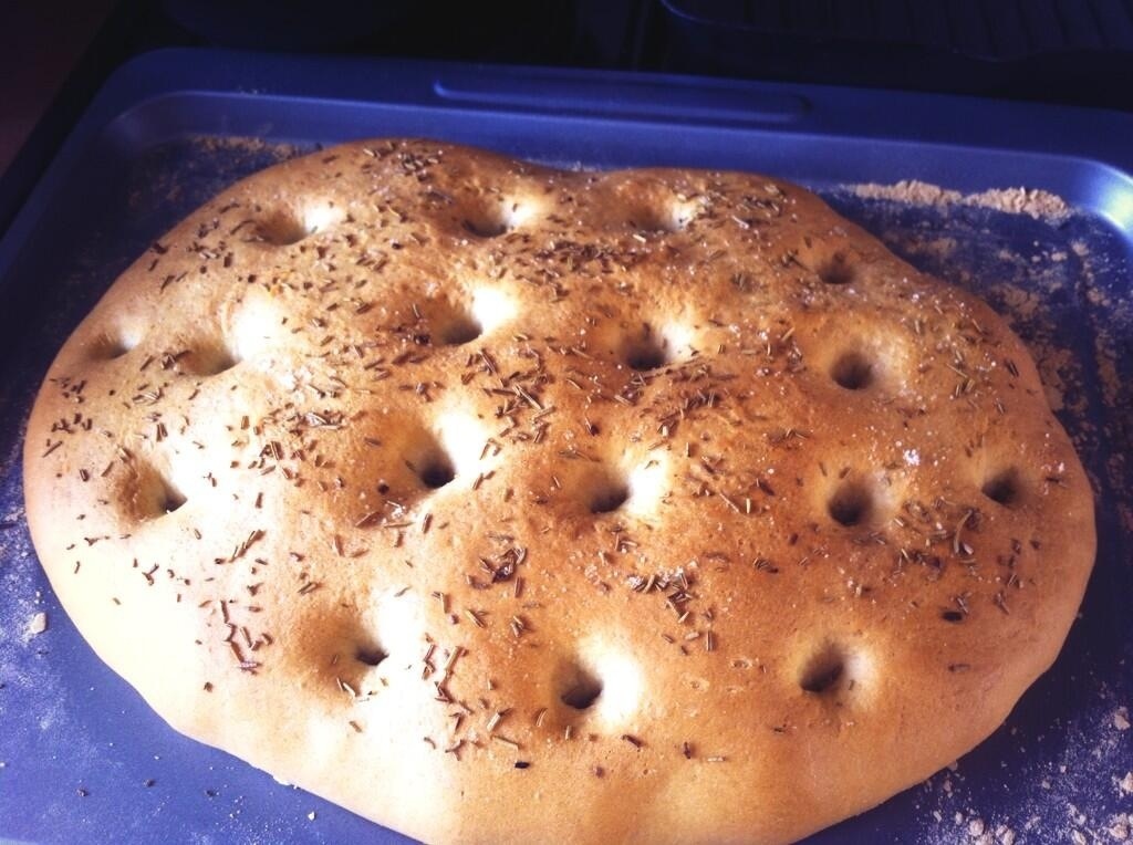 I made focaccia this morning because I am a copycat and saw that simoneats on Twitter was making some. Seriously, I can’t remember the last time I bothered to have an original idea of my own.
